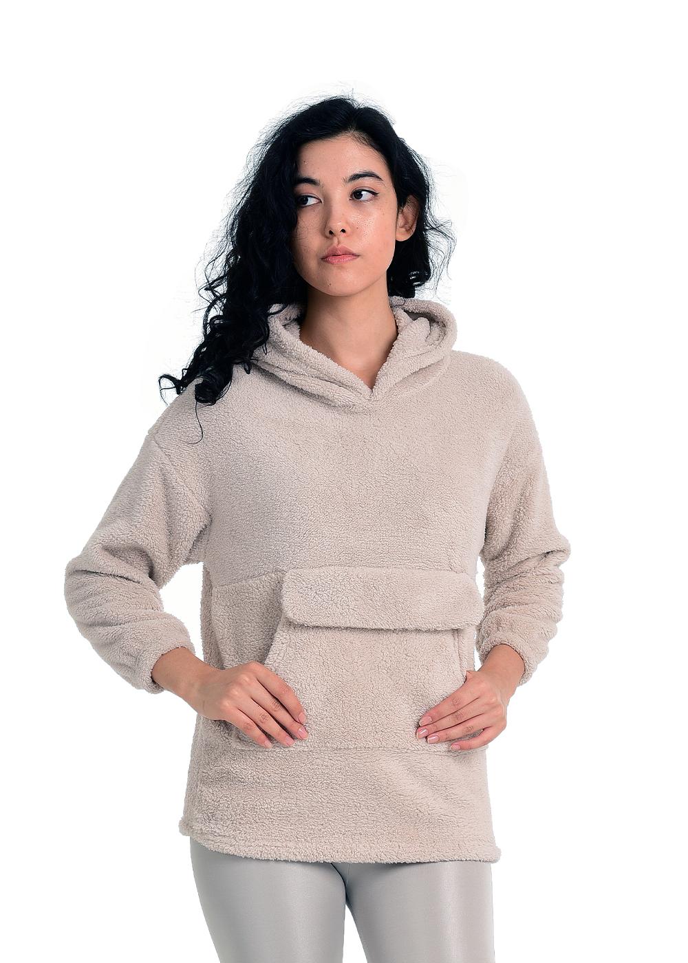 - bej renk, kanguru cepli, kapüşonlu,kol ucu lastikli