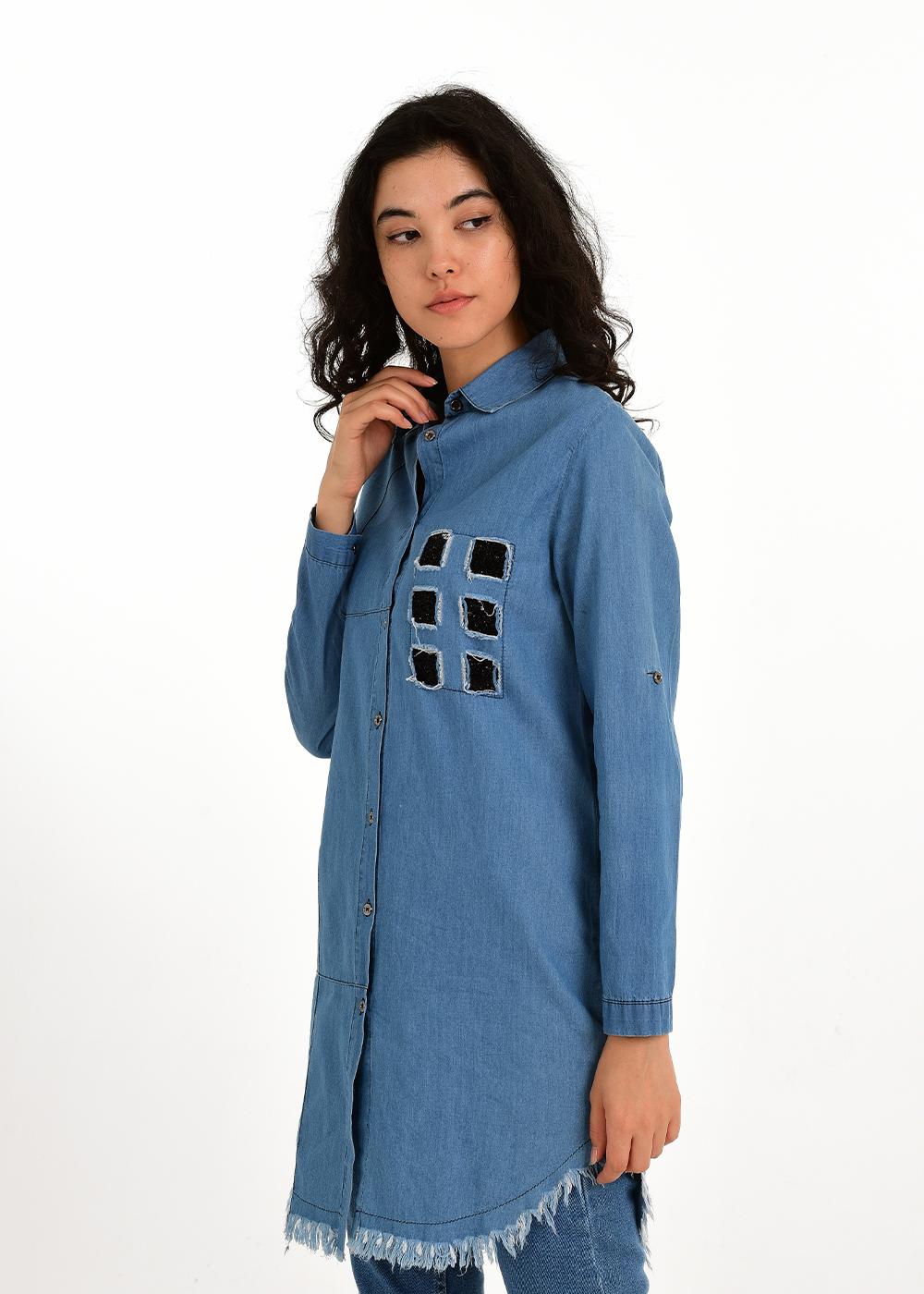 - Etek uçları saçaklı ve kol katlanabilir özelliği ile spor tunik gömlek sokak stilini yansıtmaktadır.