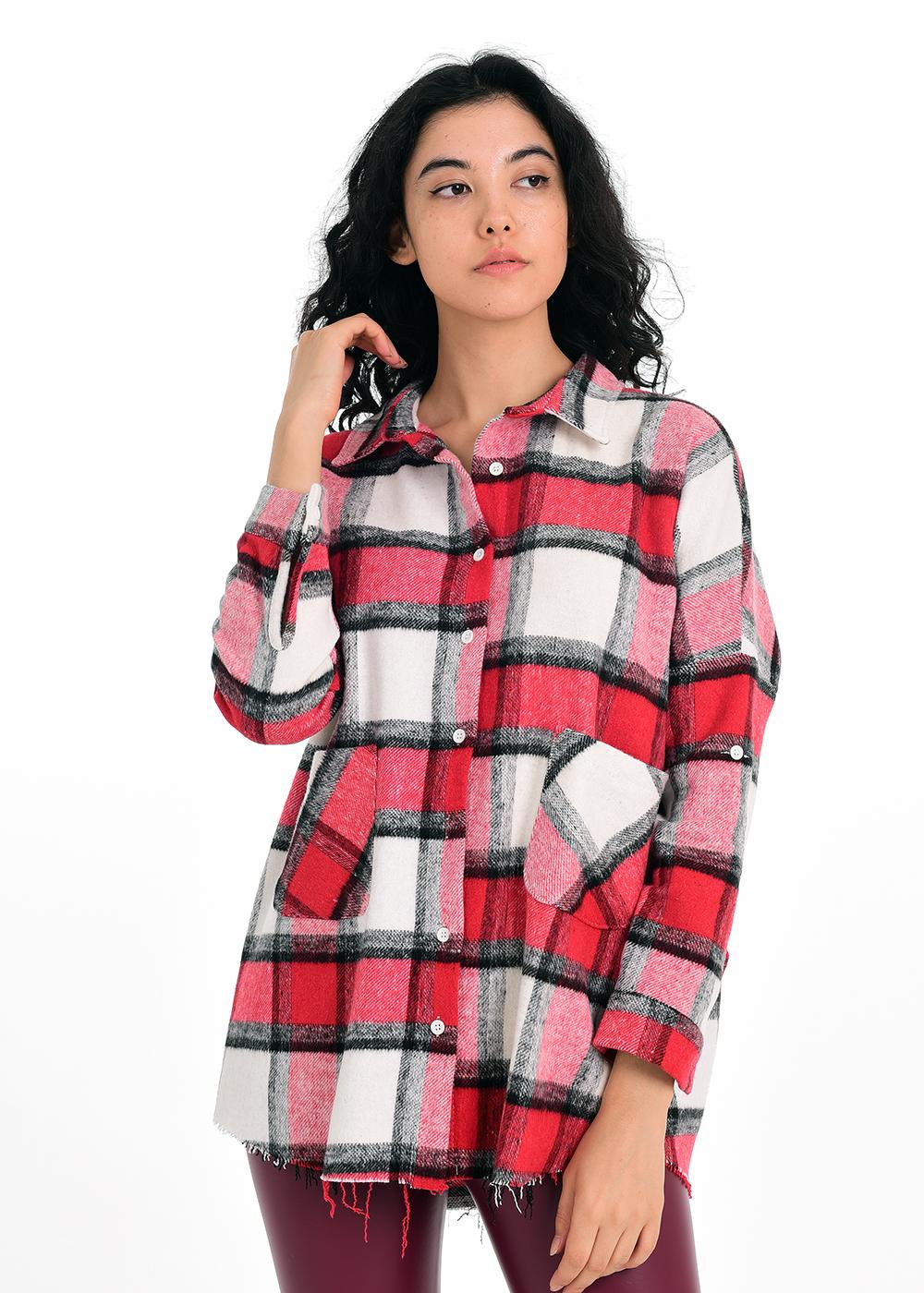 - Çift cepli, düşük omuz, etek saçaklı, Kollar Katlanabilir ekoseli kadın gömlek modelini günlük kullanımlarda tercih edebilirsiniz