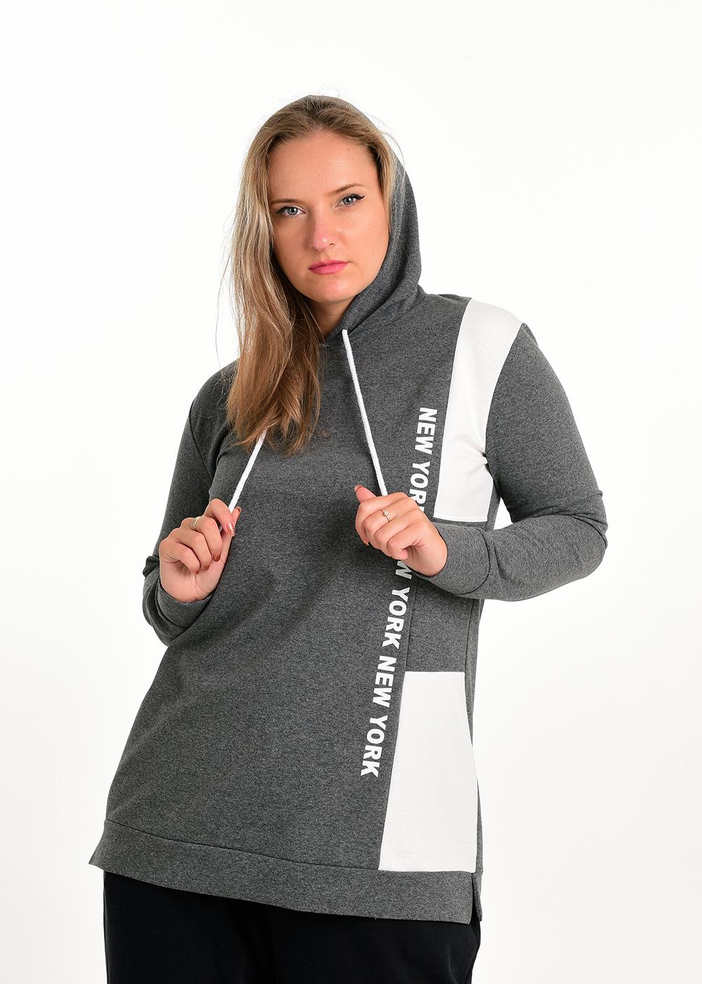 - New York Baskılı, Yanlar Bloklu Renk ,Yaka Bağcıklı, kapüşonlu Kapalı Cep Detaylı spor rahat sweatshirt