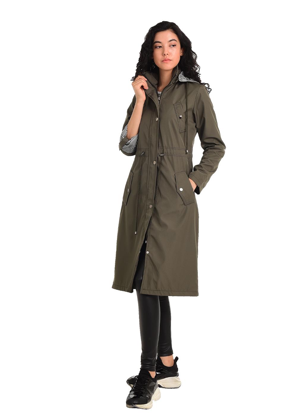 - Yeşil Renk Dökümlü trençkot G1046-3