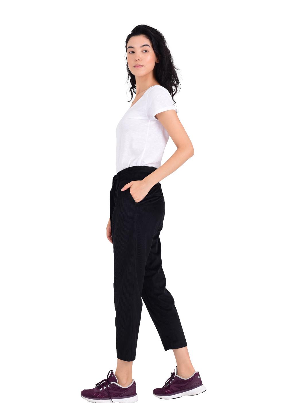 - Bel kurdeleli yüksel bel kadife pantolonun yan ve arkalarında cep var
