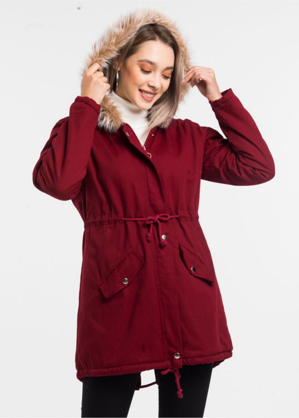 - Yanlardan cepli, cep fermuarlı kırmızı kürk mont