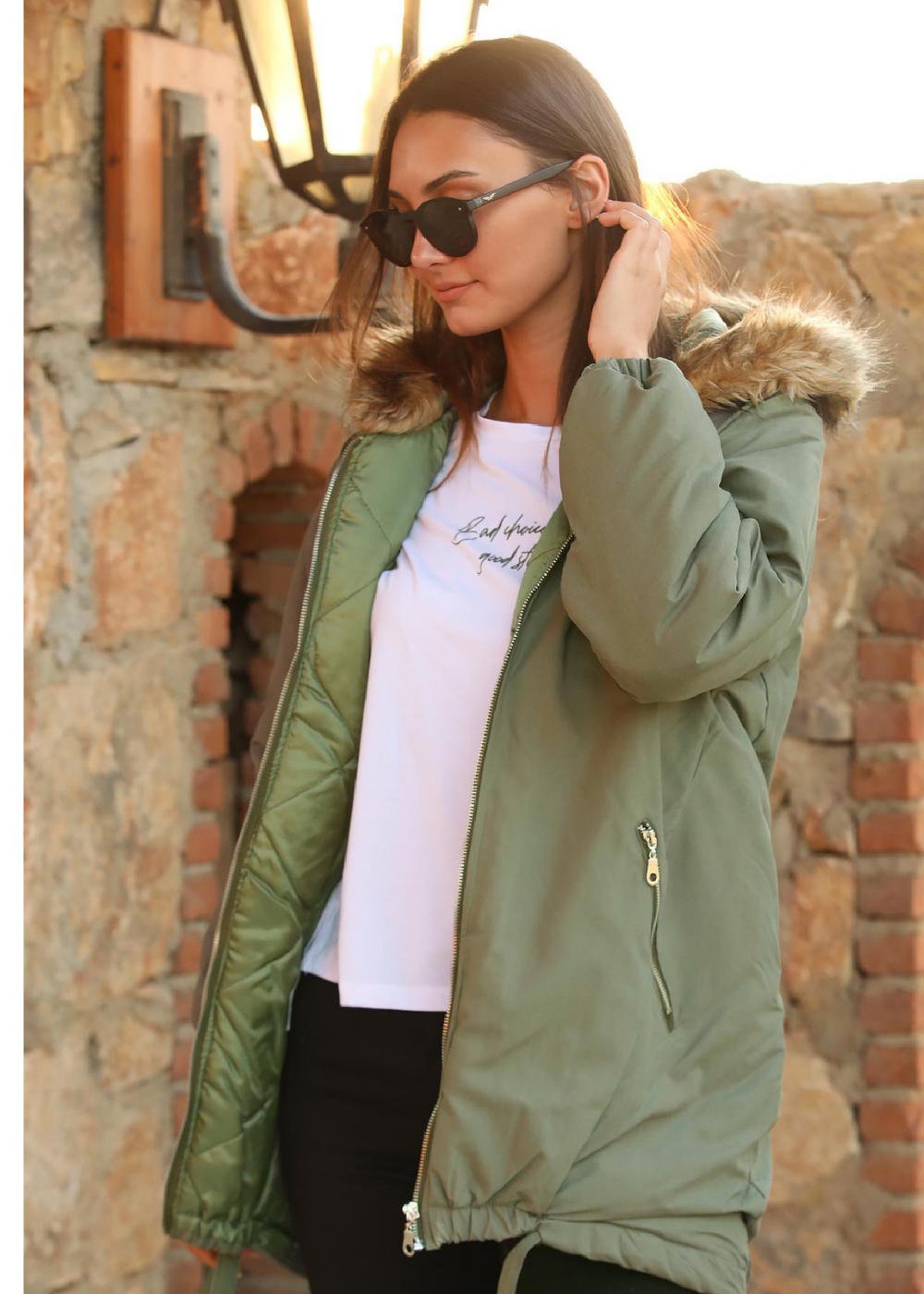 Kapüşonlu Fermuarlı Haki Kadın mont G1083