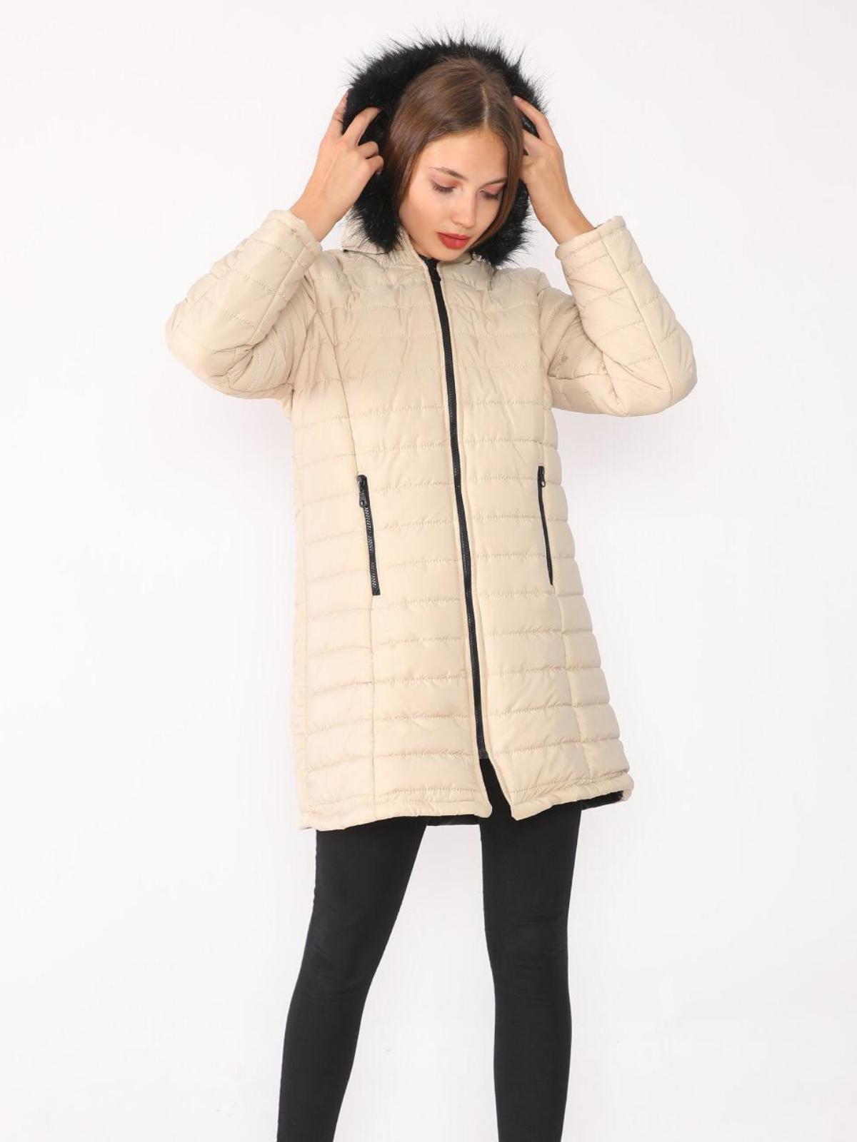 Kum Rengi Kapüşonlu Şişme Mont G1088-3