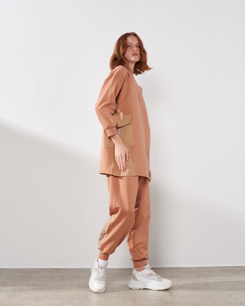 - Şık tunik takımın kolları ve pantolon  yanları  dokuma kumaş