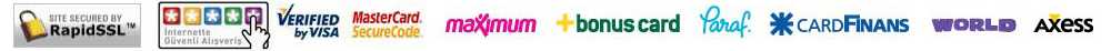 - Bütün Kredi ve Banka Kartları ile (SSL serfika güvencesi) rahatça alışverişlerinizi yapabilirsiniz.