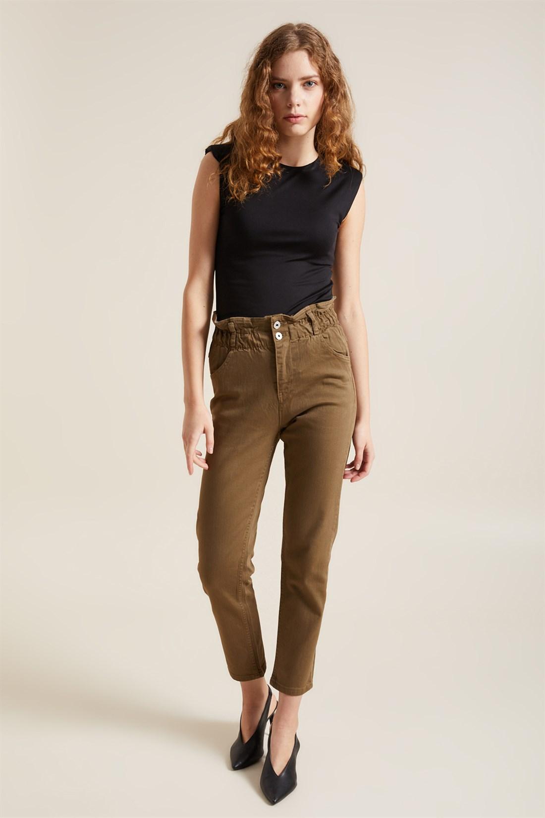 - Yüksek bel ve ayrıca lastikli bel olması denim pantolonu daha rahat kullanmanızı sağlayacaktır.