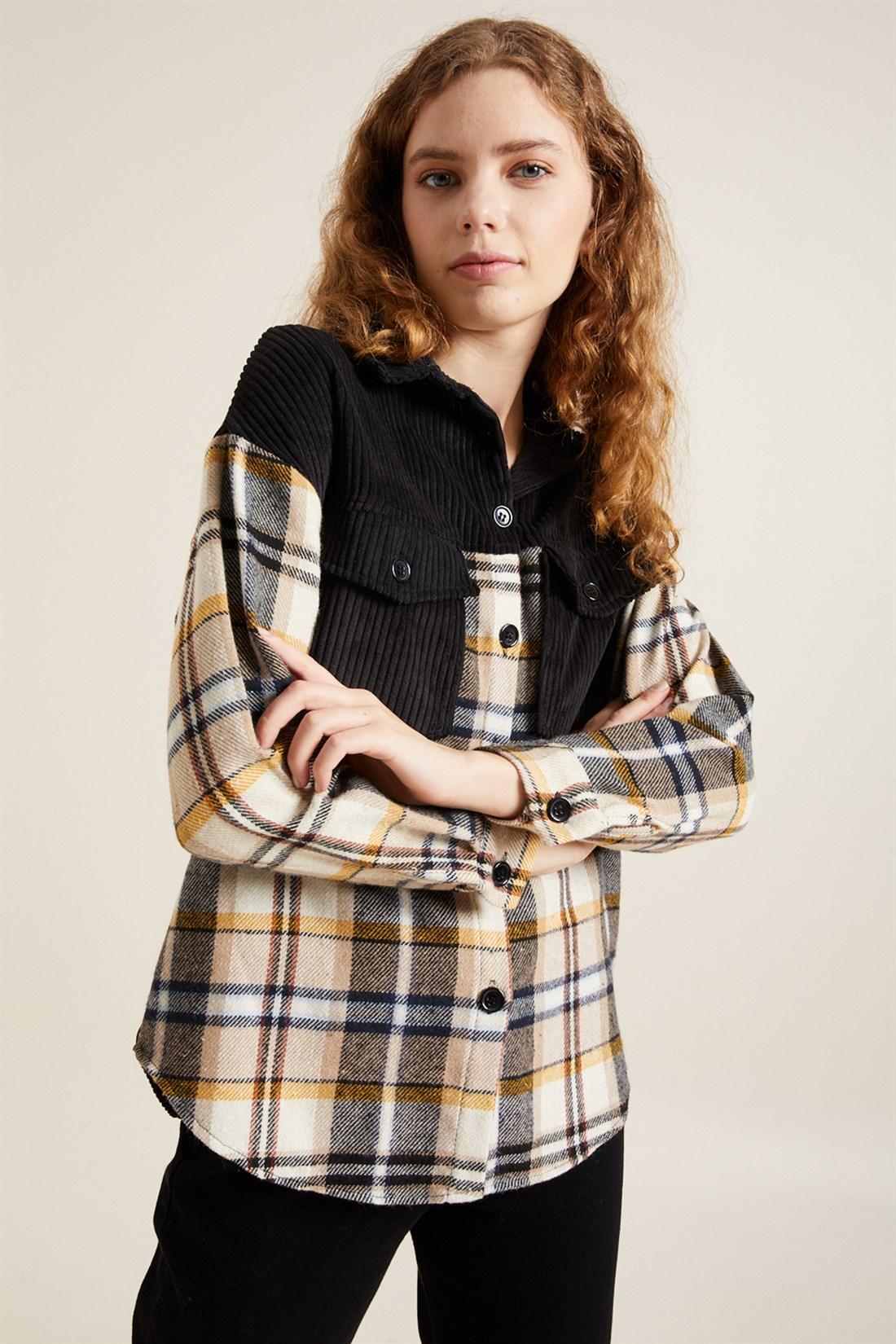 - Ön Ekoseli Arkası kadife sayesinde kadın casual gömlek ile çok daha havalı ve çok daha tarz görüneceksiniz