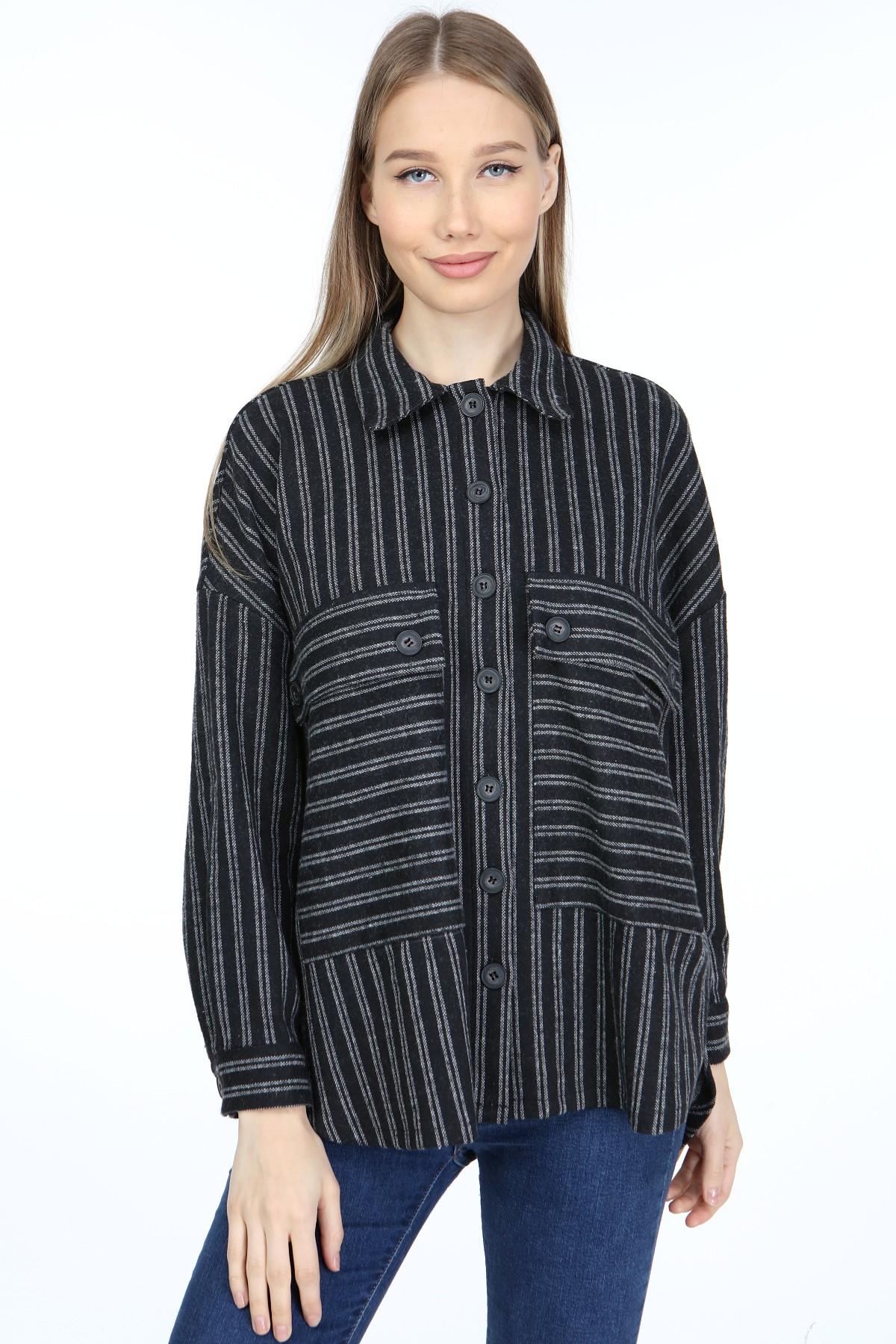 - Çift cepli, kapaklı cep kumaş üzerinde çizgi detayları ile çok fazla kullanım alanı sağlamakta yeni sezon kadın gömlek ile keyifli stiller oluştura bilirsiniz