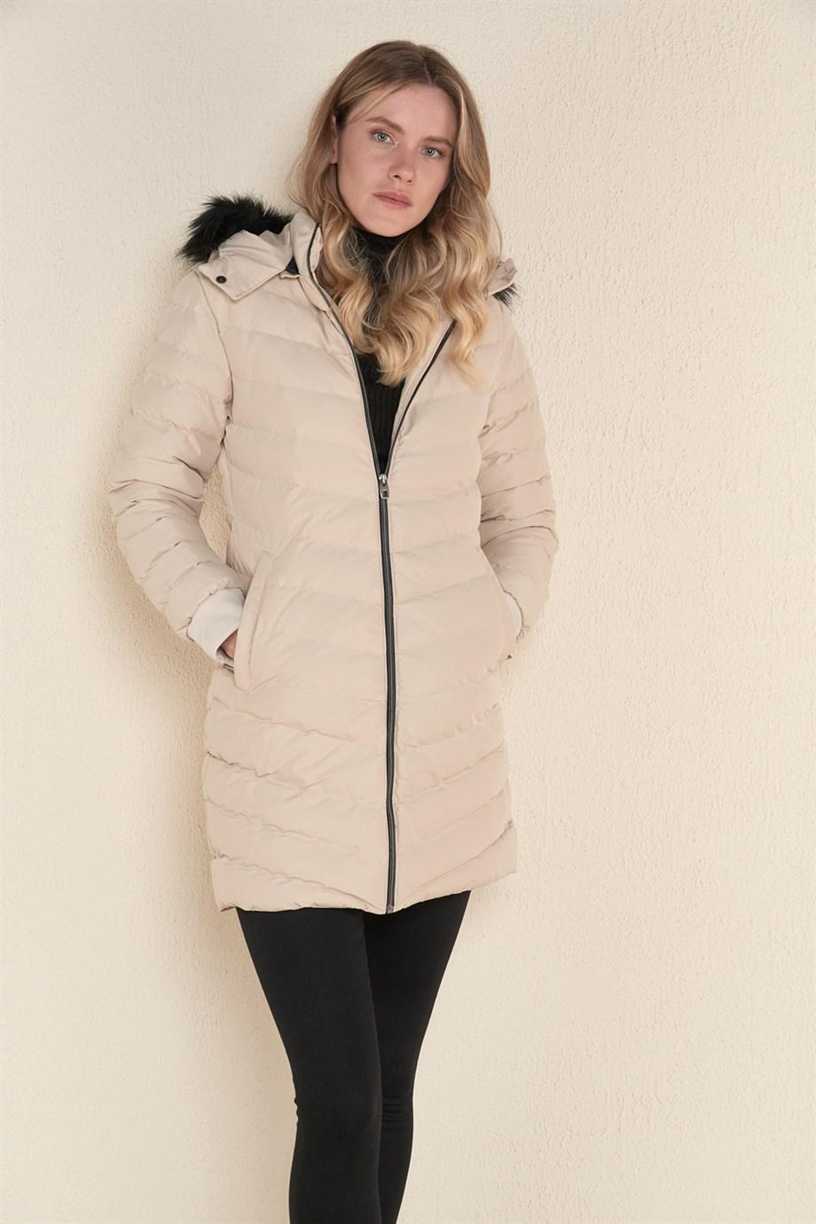 - Kapüşonu düğmeli istenirse çıkartıla bilir kadın şişme mont