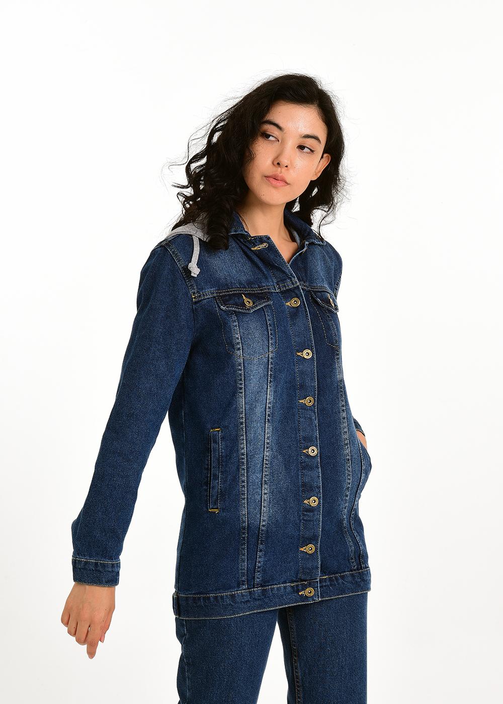 - Ekstra olarak kadın kot ceketinin Kapüşonu isteğine bağlı çıkarta bilir veya yeniden takabilirsiniz kapüşonlu kot ceket ile modunuza göre kombin yapabilirisiniz