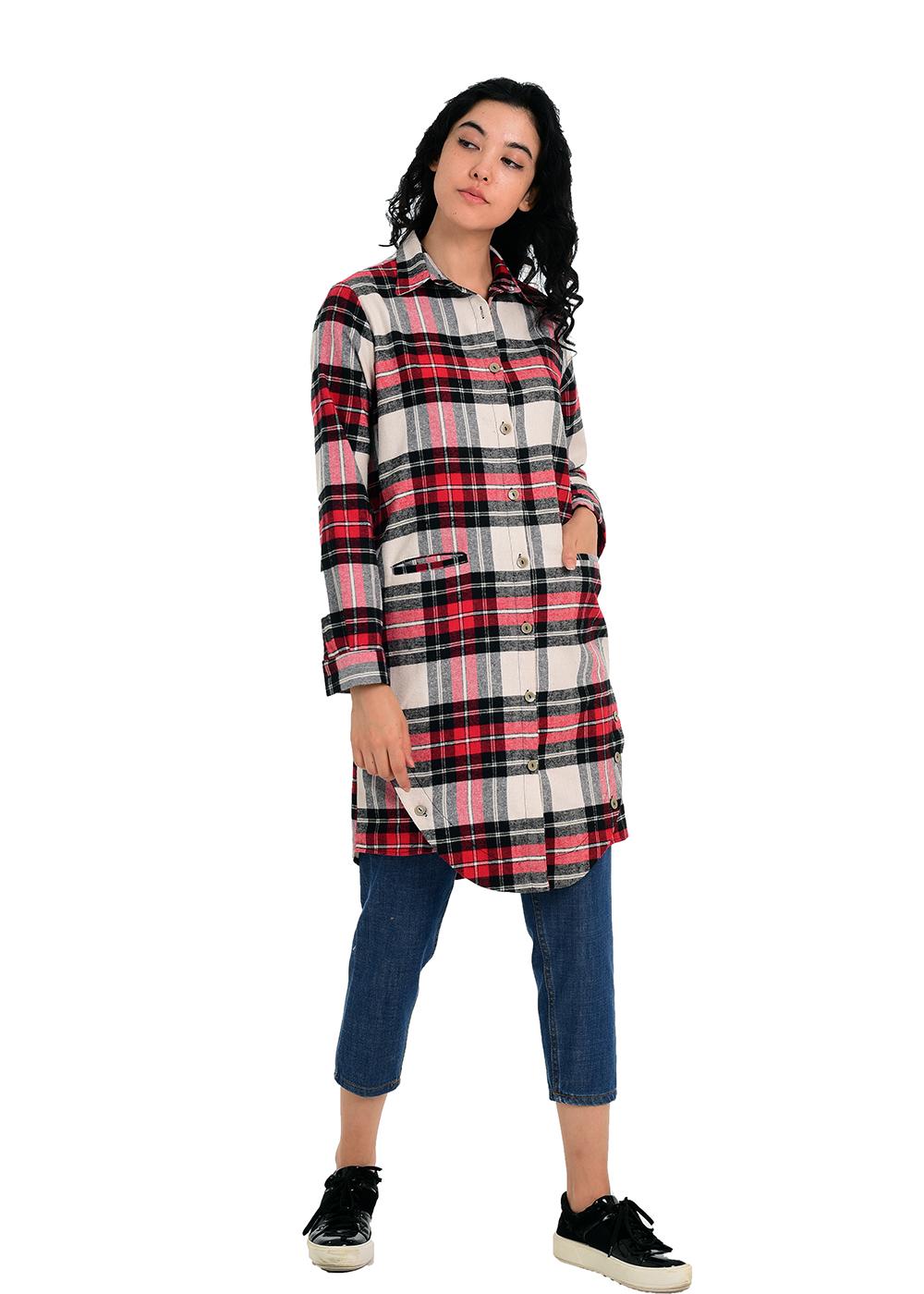 - Önde cift cepli, boydan düğmeli ve etek yırtmaçlı. Yırtmaç üzerinde düğme detayları ve farklı ekose tunik gömlek modelini severek kullanacaksınız.